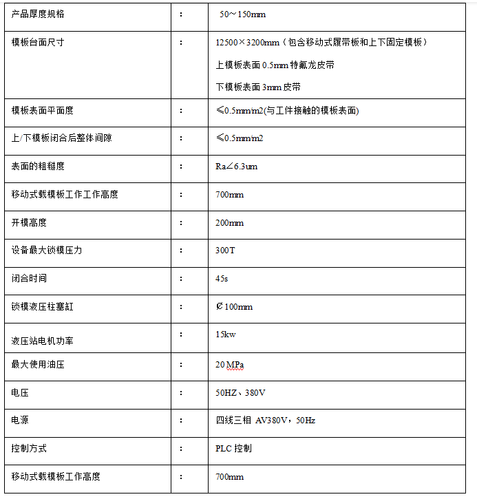 1. 設備的構成:設備包括龍門架、支承架、底座、2塊皮帶式載模板、導軌、電控柜、液壓系統等。