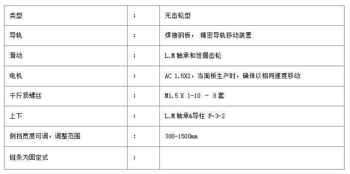 側擋模具裝置安裝在左右兩側, 防止具有強大起義壓力的PU泡沫,側塊從面板側面泄漏,在調(diào)整面板寬度的情況下,兩側引導之一 裝置必須固定,然后另一個側導向裝置被移動到雙傳送帶的內(nèi)側。